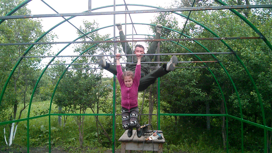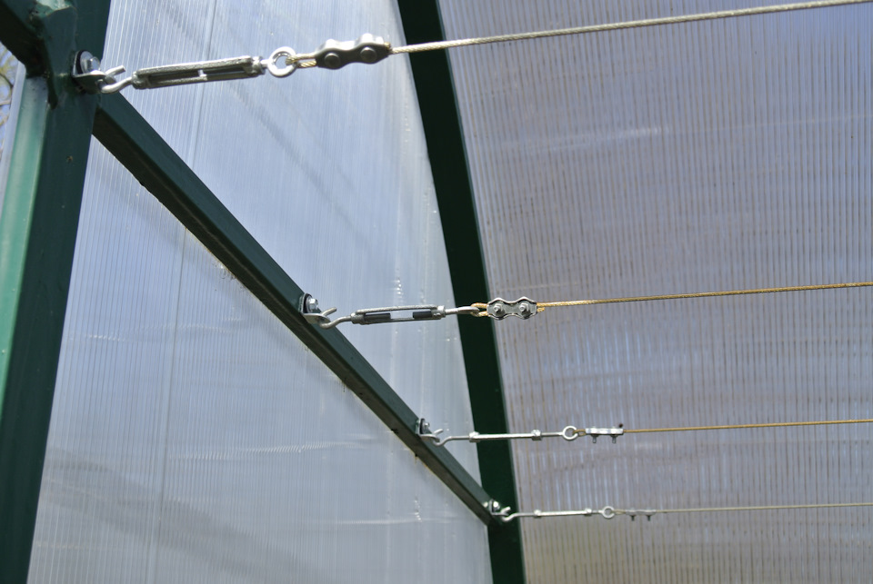 в отпуске, в прошлом году. Зиму «перезимовала» без каких либо проблем, только немного появилась ржавчина на тросах. Всем добра и хорошего урожая! В планах поставить таймер полива, уже закуплен.