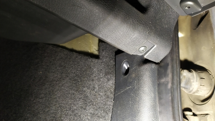 И винты под вставкой из кожзама в бардачке(на самом деле, я незнаю нужно ли это в действительности или нет, но я открутил), пластиковые планки-держатели отстегиваются путем снятия лицевой крышки вещевого ящика(чтоб добраться до механизма замка), и снизу нажимаем на зацепы, планка высвобождается.